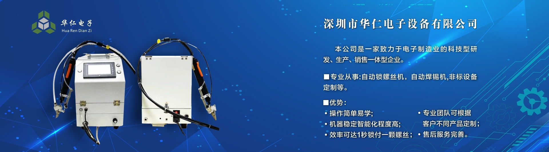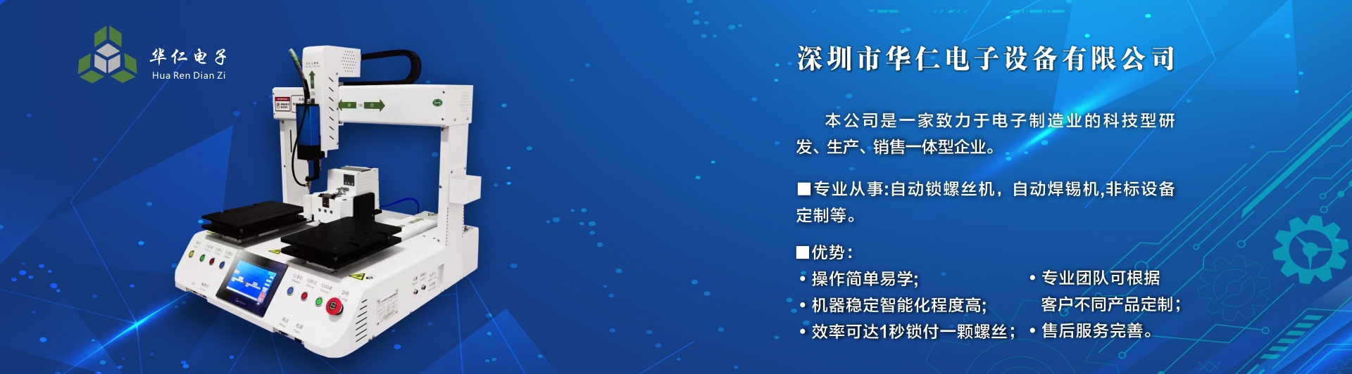 深圳市華仁電子設備有限公司是一家致力于電子制造業(yè)周邊設備的科技型研發(fā)、生產(chǎn)、銷售一體的企業(yè),專業(yè)從事:自動鎖螺絲機;自動焊錫機;非標設備定制機等,公司長期以來在行業(yè)中積累了豐富的經(jīng)驗,擁有專業(yè)的研發(fā)、技術(shù)、銷售支持工程團隊、各高級技術(shù)人才為客戶提供優(yōu)質(zhì)產(chǎn)品和服務,同時不斷吸取國內(nèi)外先進技術(shù),更準確及時地為客戶提供優(yōu)質(zhì),性價比高的產(chǎn)品、公司以專業(yè)的售前、售中、售后服務贏得了客戶的信賴和好評,為客戶提供先進自動化設備一體式解決方案、
